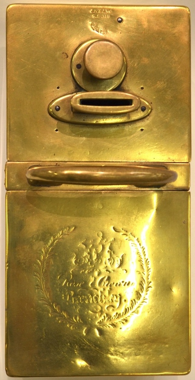1830s brass tobacco honour box, stamped