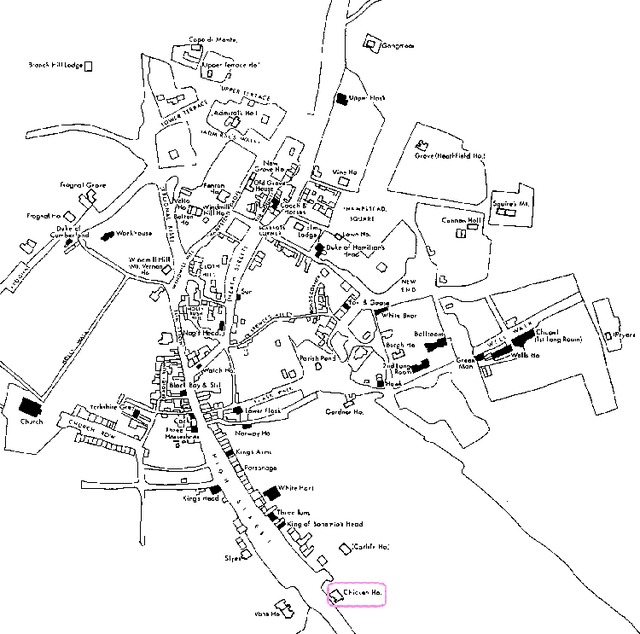 above map). This pub closed c1754; the site is now occupied by buildings at