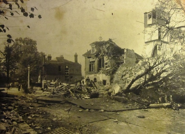 in a WWII bombing raid (see photo below), and rebuilt in 1968. It closed in 2003