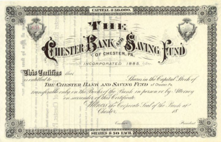 1880s Chester Bank And Saving Fund Of Chester, PA