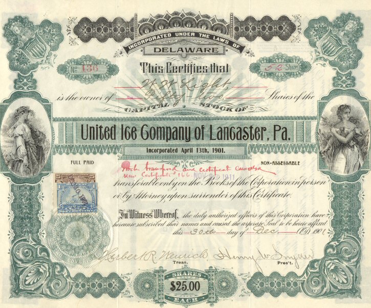 1901 United Ice Company Of Lancaster, PA